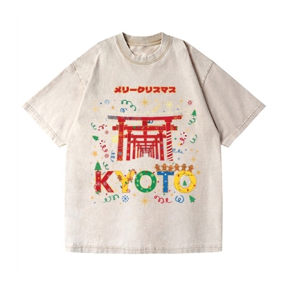 Christmas in Kyoto Vintage Wash Japanese Design T-Shirt