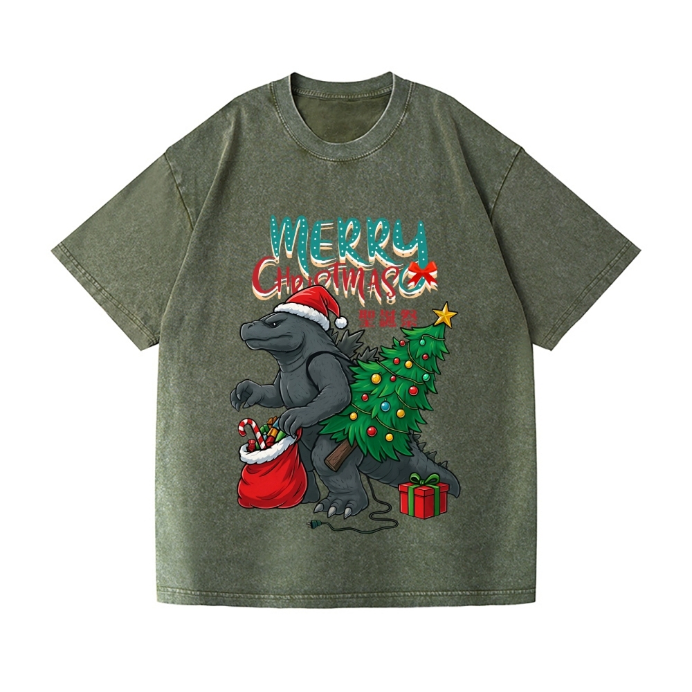 Christmas Kaiju Vintage Wash Japanese Design T-Shirt