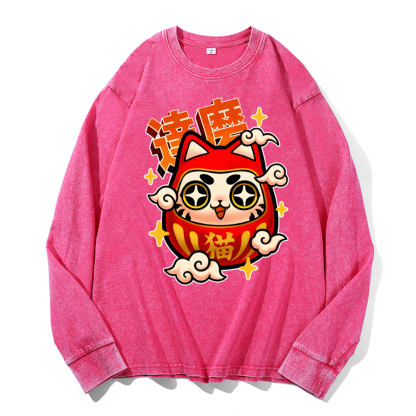 Daruma Vintage Cotton Wash Crewneck Long-Sleeve T-Shirt
