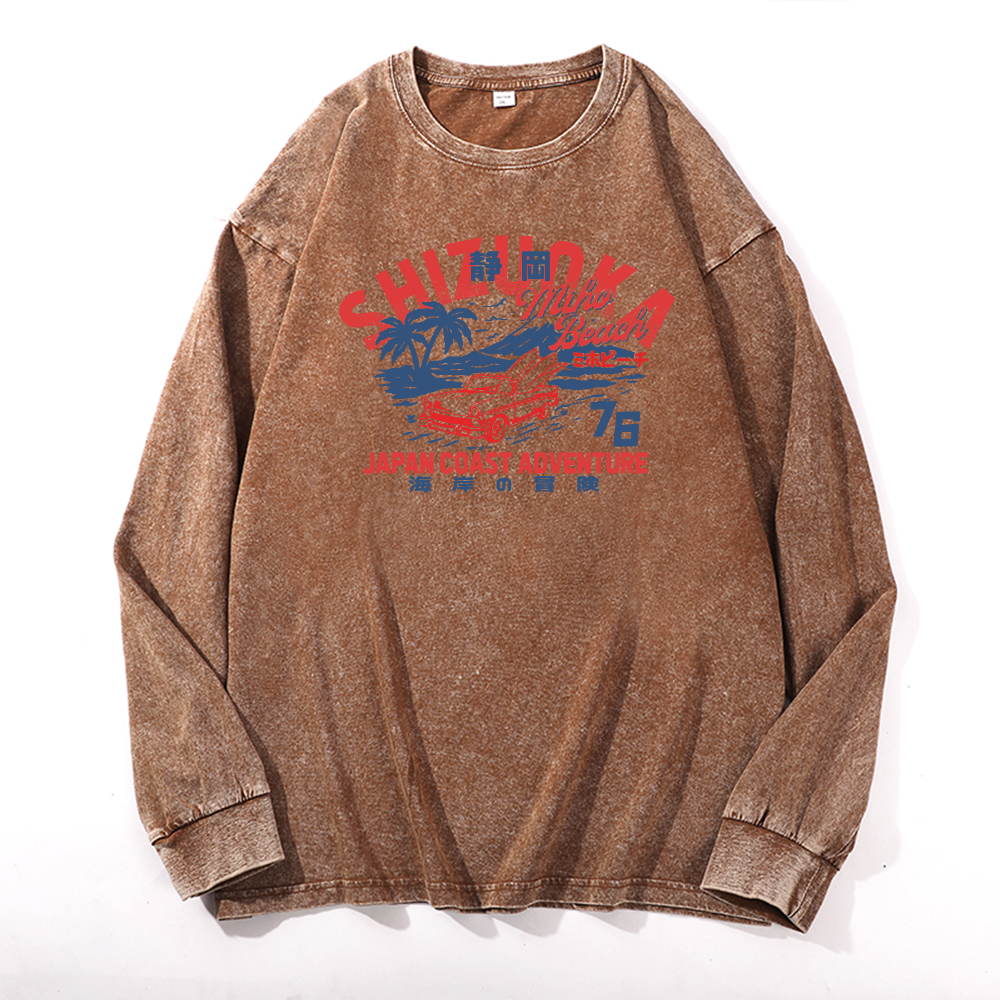 Japan Coast Adventure Vintage Cotton Wash Crewneck Long-Sleeve T-Shirt