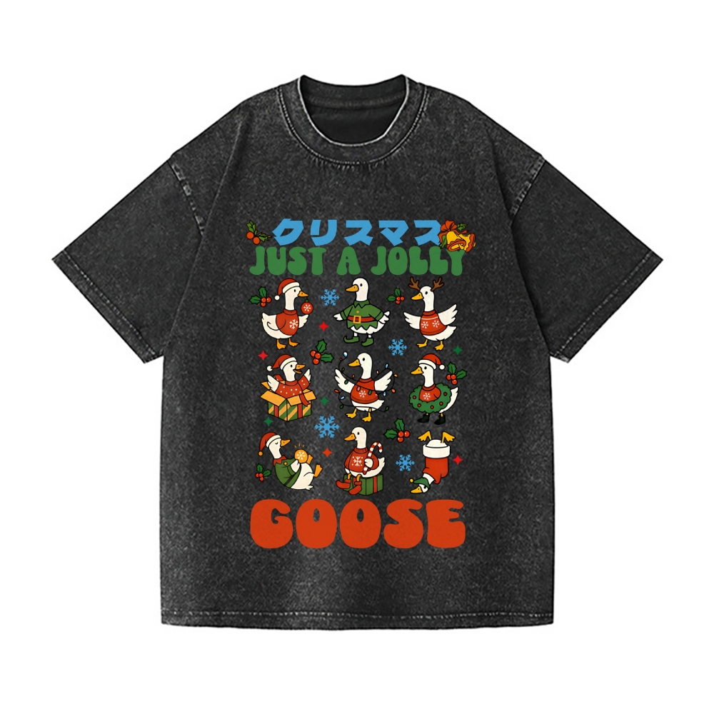 Just a Jolly Goose Christmas Vintage Wash Japanese Design T-Shirt