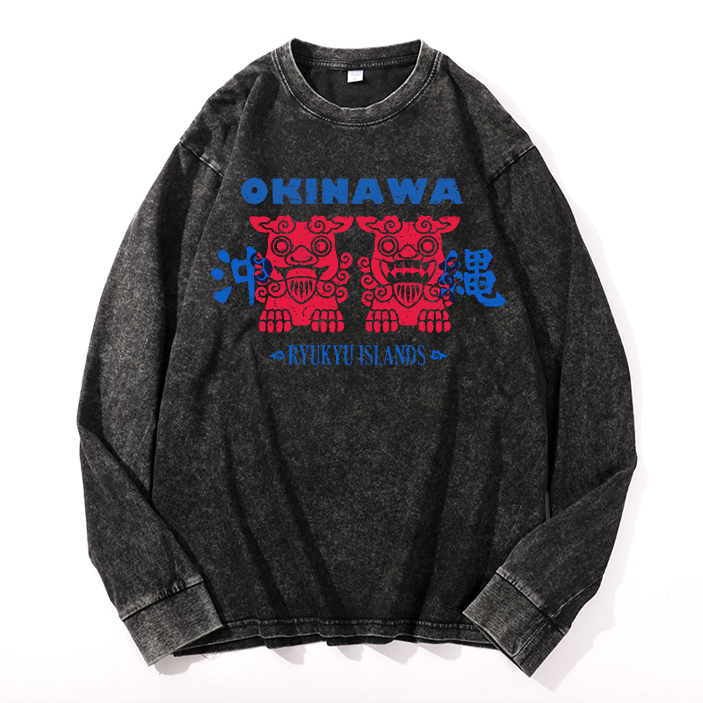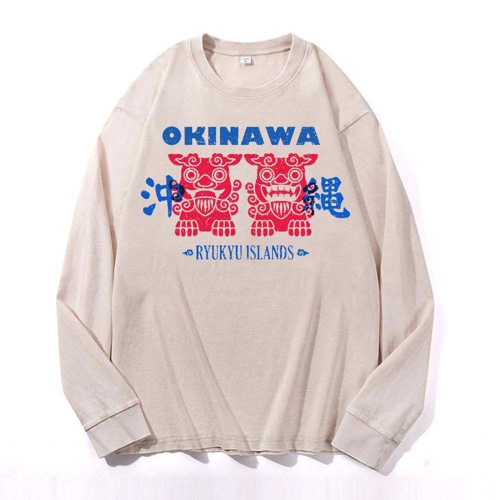 Okinawa Vintage Cotton Wash Crewneck Long-Sleeve T-Shirt