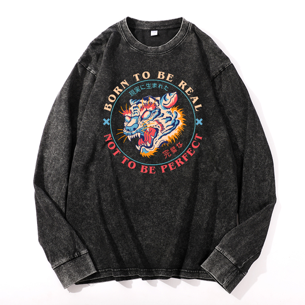 Tiger Vintage Cotton Wash Crewneck Long-Sleeve T-Shirt
