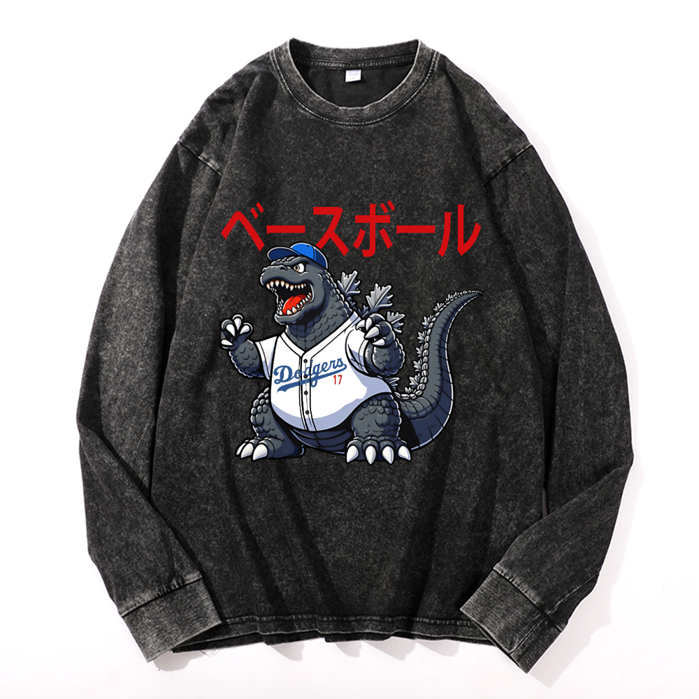 Dodgers Kaiju 17 Baseball Vintage Cotton Wash Long-sleeve T-shirt