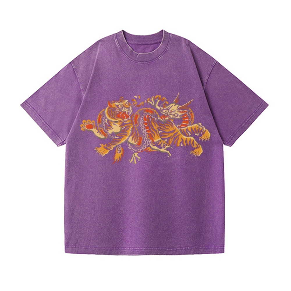Dragon Tiger Vintage Wash Japanese Design T-Shirt