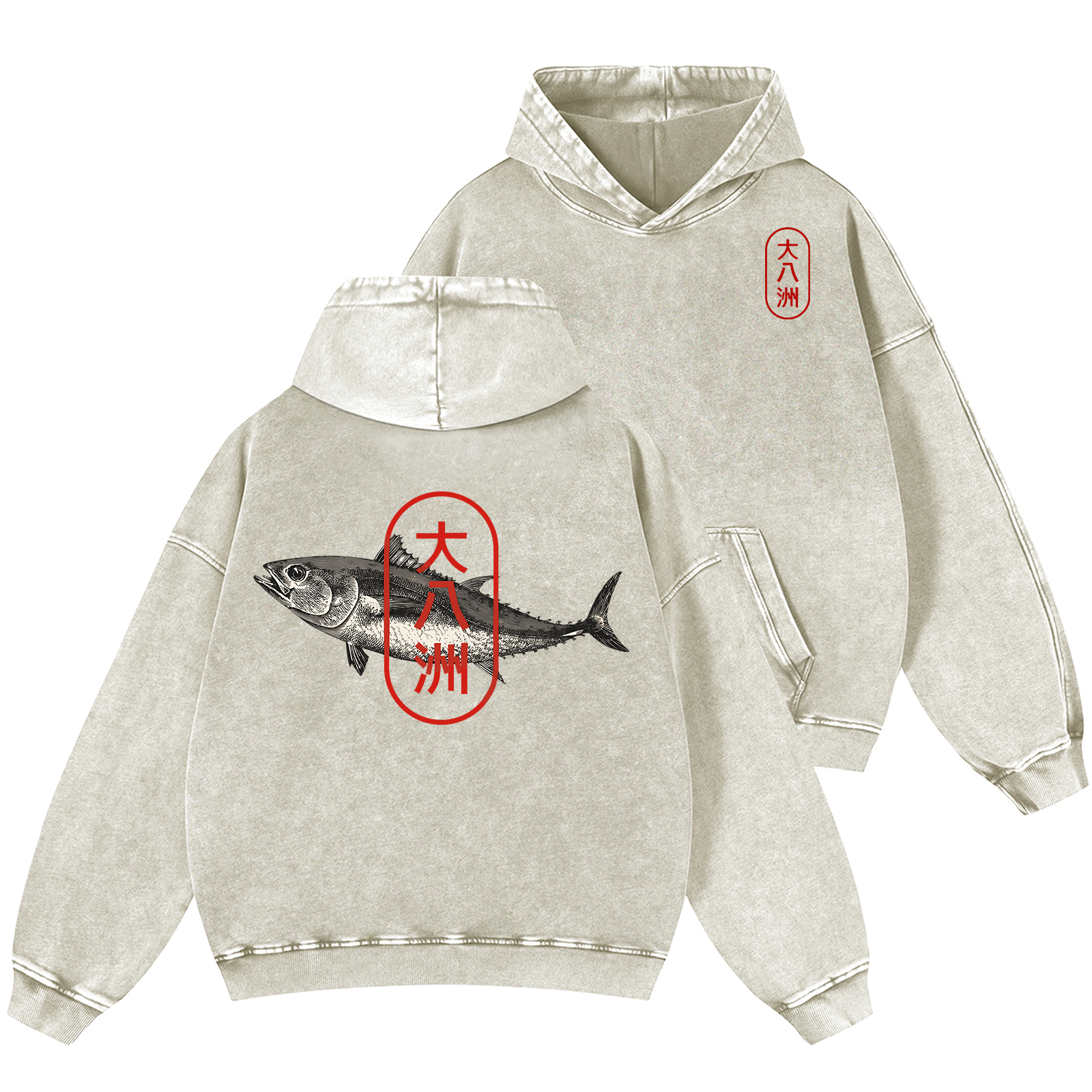 Great Eight Islands of Japan Tuna Fish Vintage Washed Cotton Back Art Hoodie