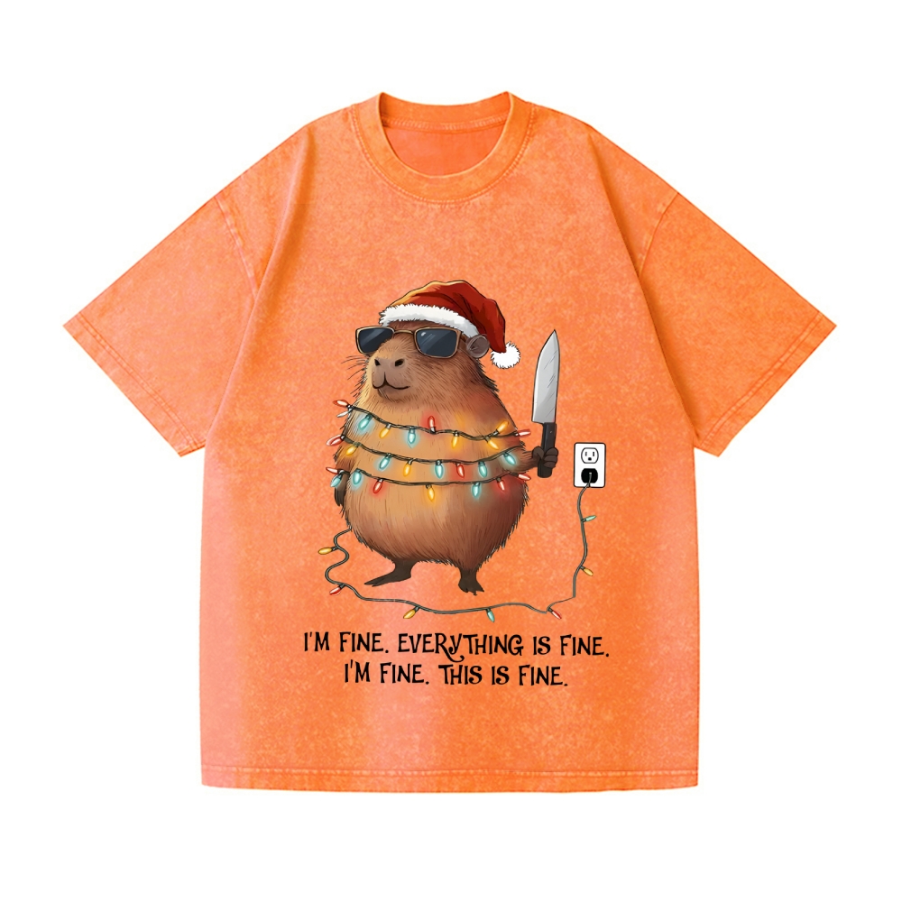 Capybara Christmas: I'm fine Vintage Wash Japanese Design T-Shirt
