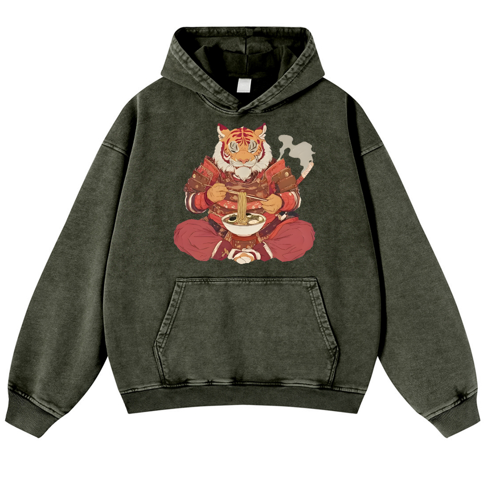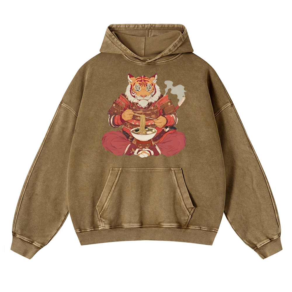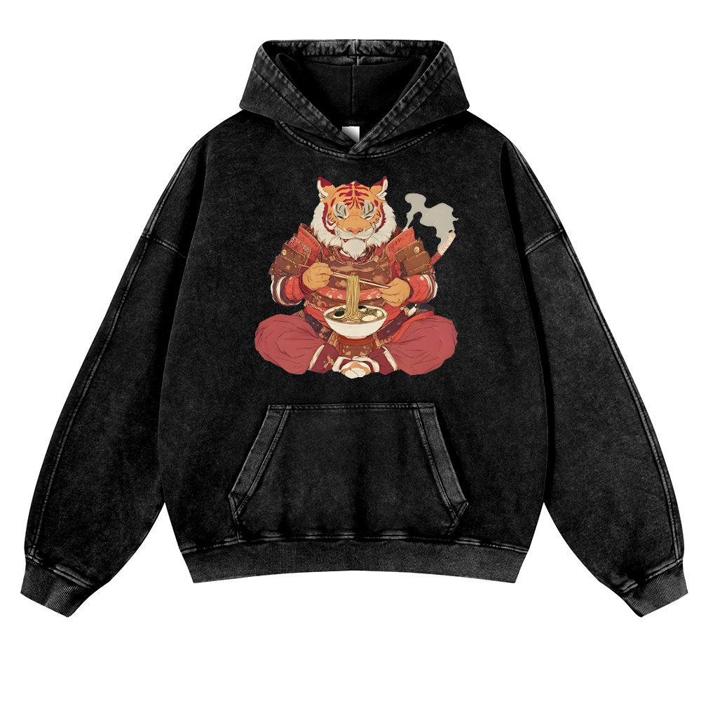 Tiger Ramen Vintage Washed Thick Cotton Hoodie