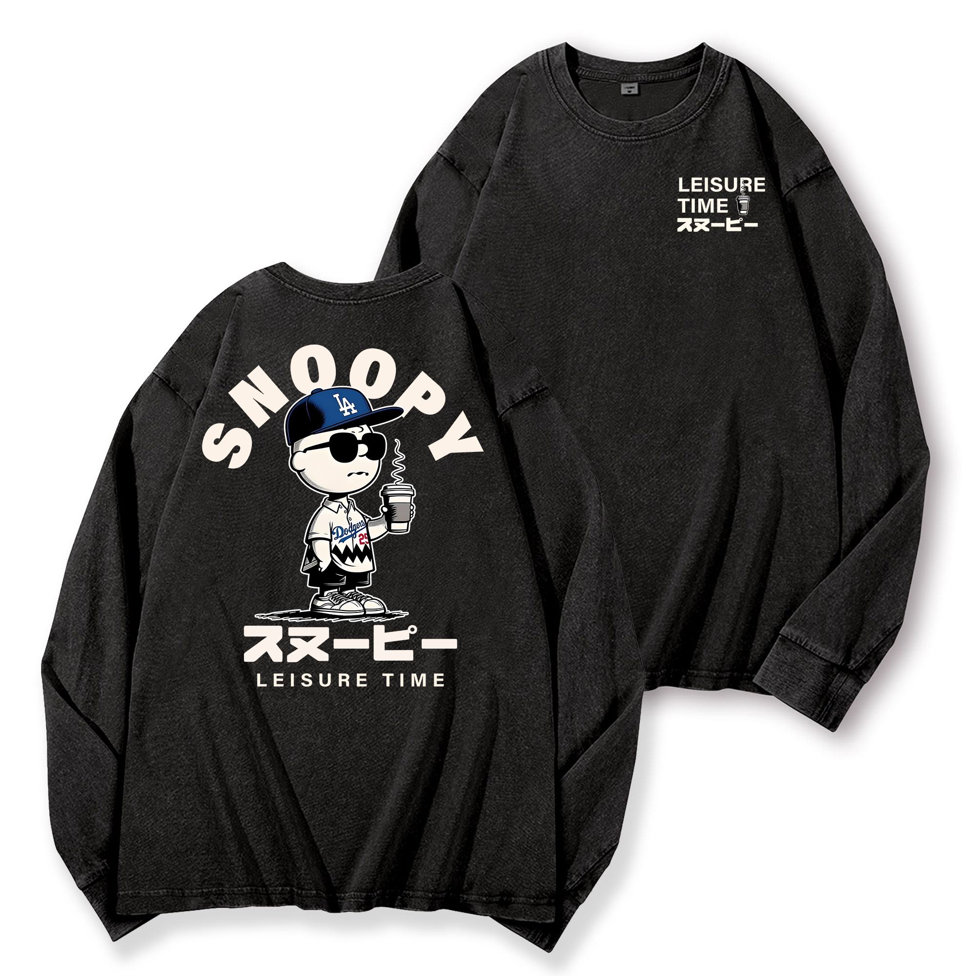 Peanuts Dodgers Dog Baseball Vintage Washed Cotton Back Art Long-sleeve T-shirt