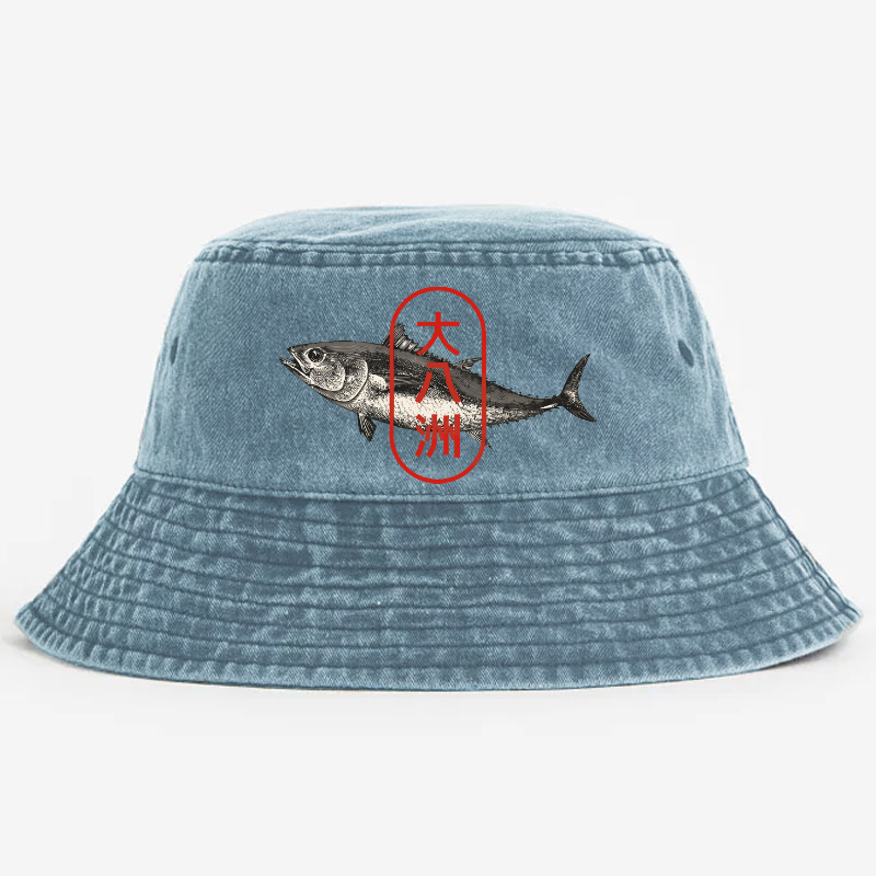 Great Eight Islands of Japan Tuna Fish Vintage 100% Cotton Bucket Hat