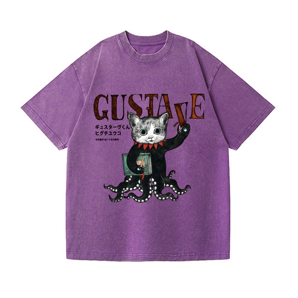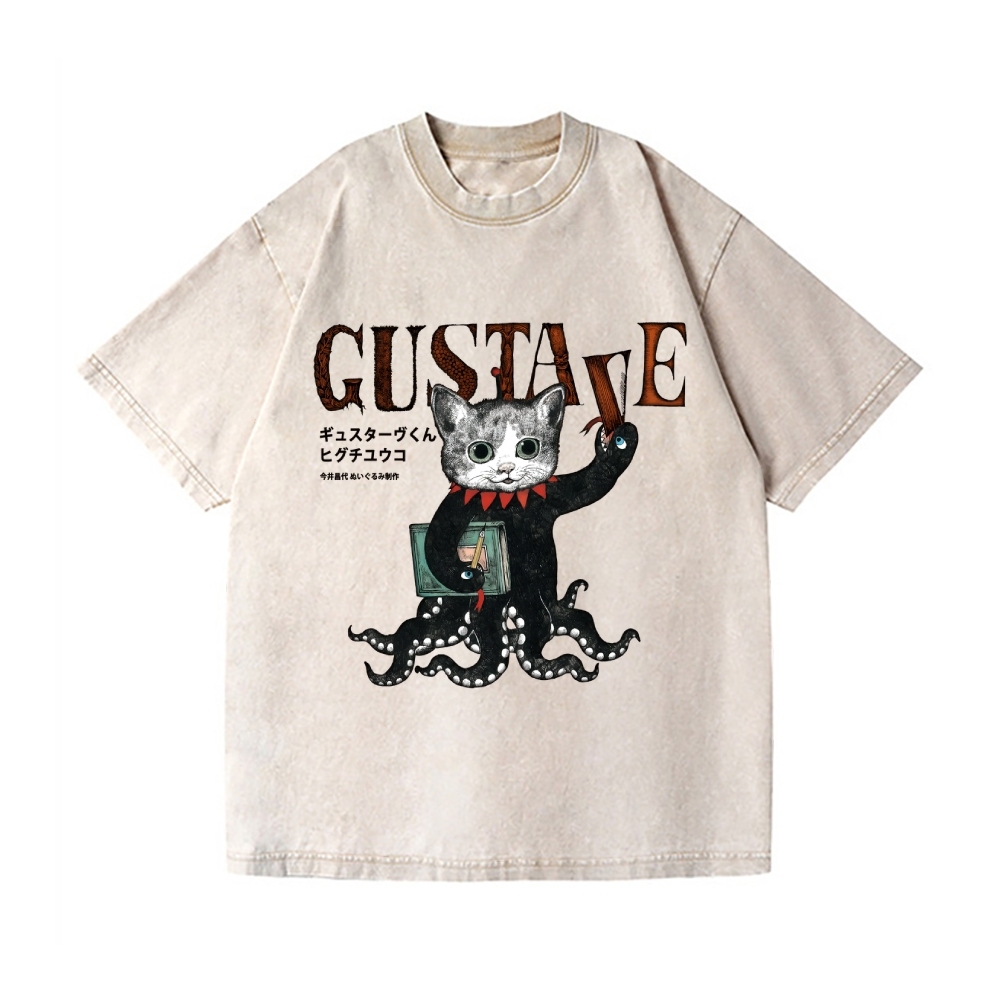 Octopus Black Cat Vintage Wash Japanese Design T-Shirt