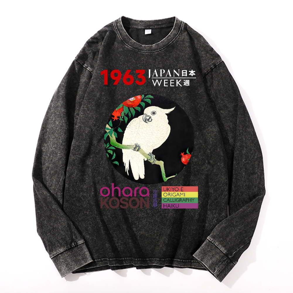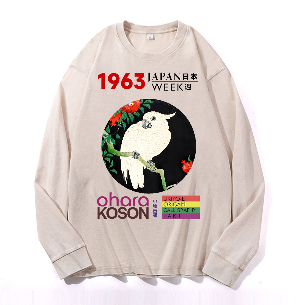 Ohara Koson Vintage Cotton Wash Crewneck Long-Sleeve T-Shirt