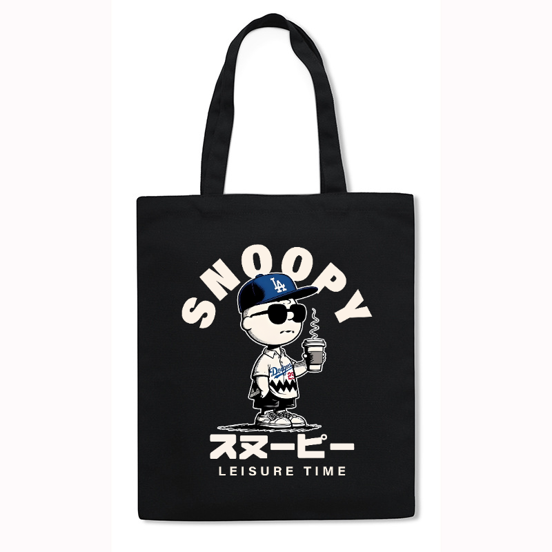 Peanuts Dodgers Dog Baseball Japanese Style Canvas Tote Bag