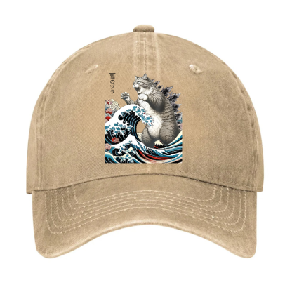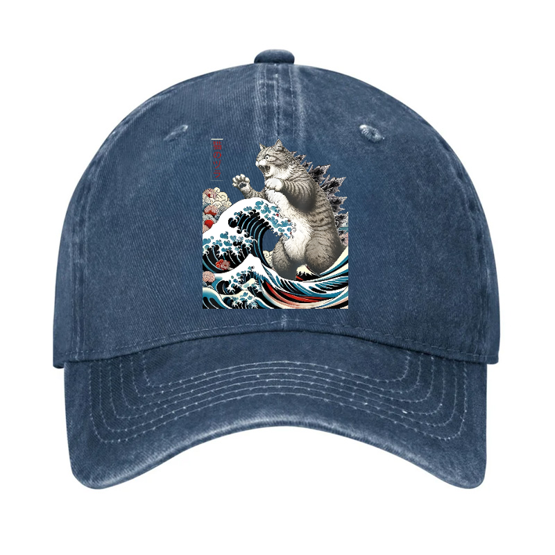Cat Kaiju Ukiyoe Great Wave Vintage Cotton Hat