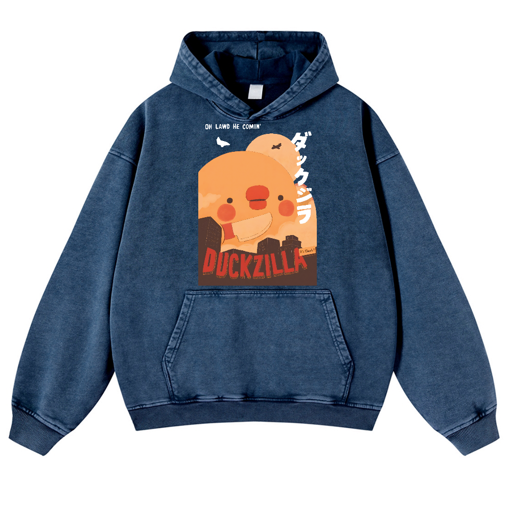 Duck Kaiju Vintage Washed Thick Cotton Hoodie