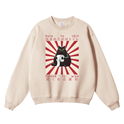 Born To Shit Forced To Wipe Cat Vintage Cotton Blend Crewneck Sweatshirt