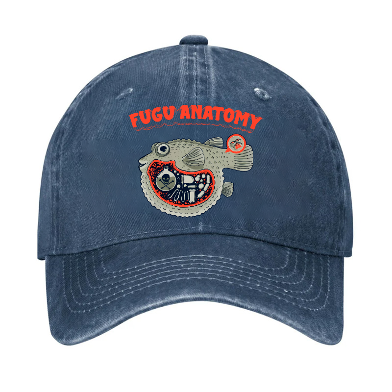 Fugu Anatomy Pufferfish Vintage Cotton Cap