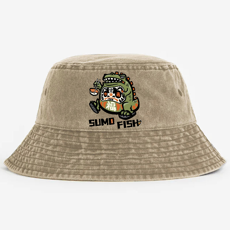 Sumo Fish Daruma Sushi Vintage 100% Cotton Bucket Hat