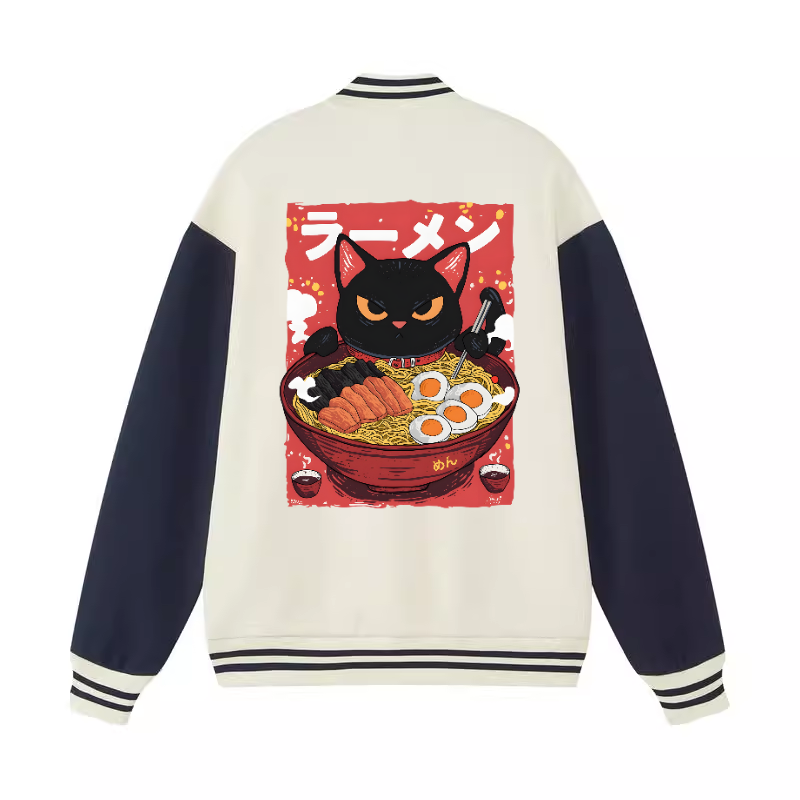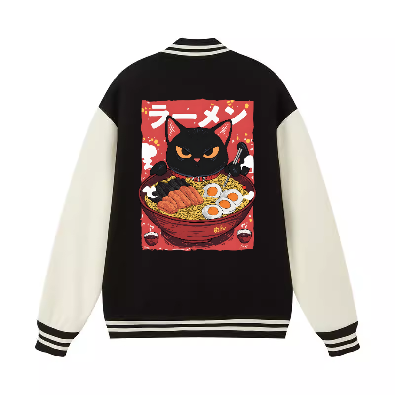 Black Cat Ramen Vintage Cotton Varsity Jacket