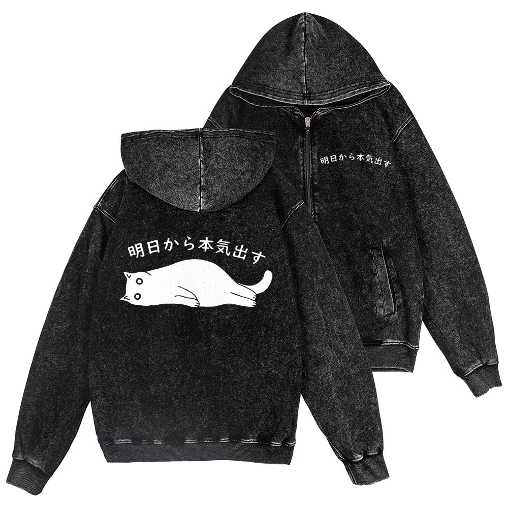 Cat Vintage Wash Zip Hoodie