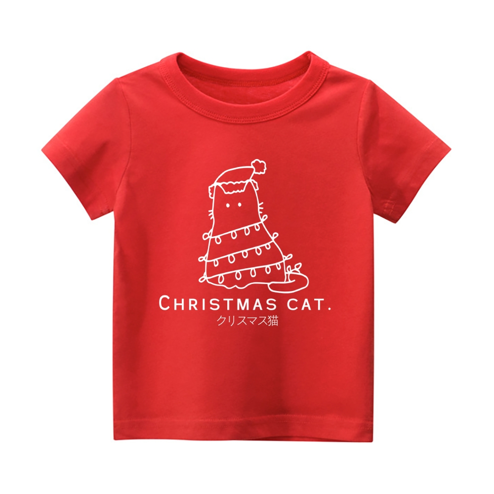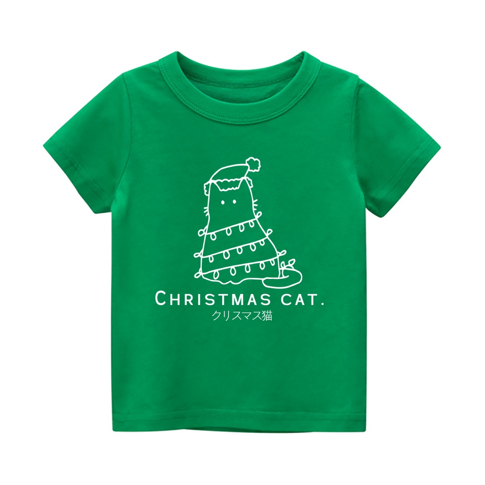 Christmas Cat Vintage Kids Cotton T-shirt