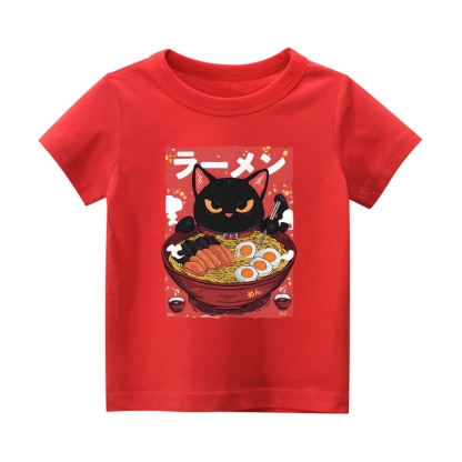 Ramen Cat Vintage Kids Cotton T-shirt