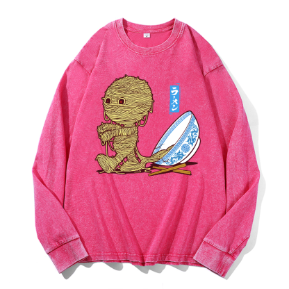 Ramen Yummy Vintage Cotton Wash Crewneck Long-Sleeve T-Shirt