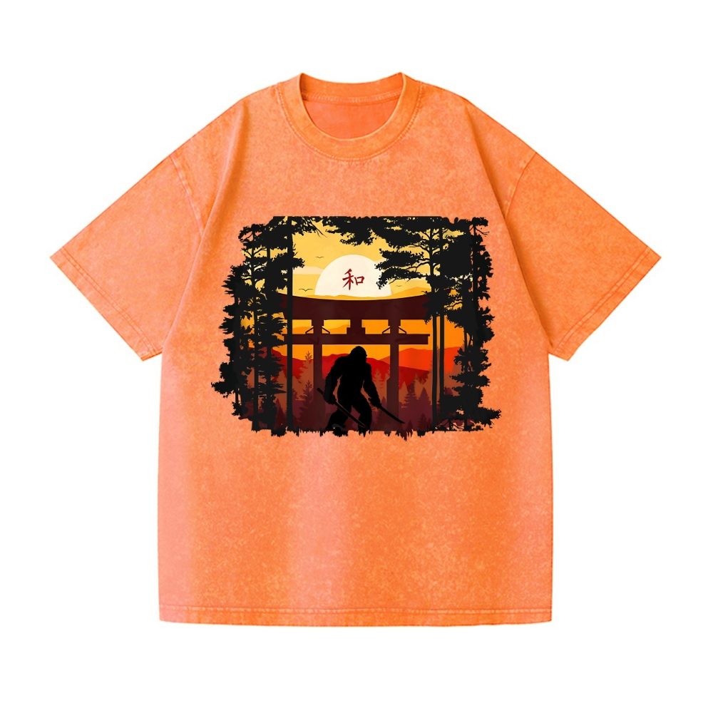 Samurai Bigfoot Ukiyoe Vintage Wash Japanese Design T-Shirt