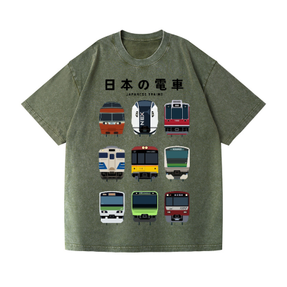 Trains Vintage Wash Japanese Design T-Shirt