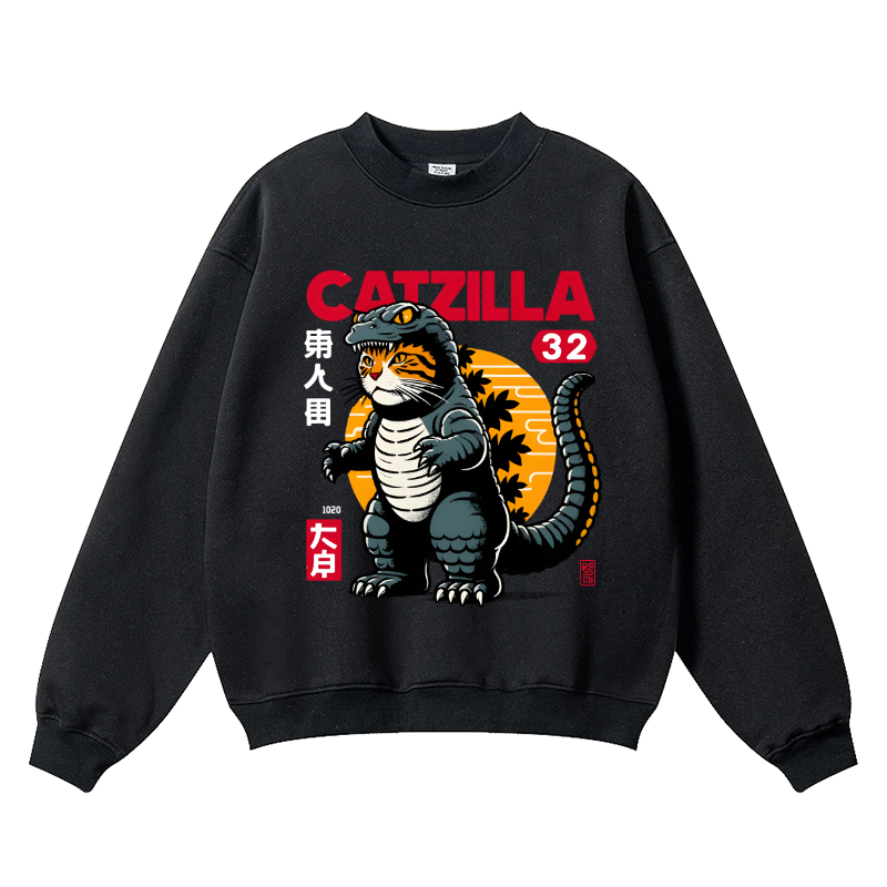 Catzilla Cat Kaiju Vintage Cotton Blend Crewneck Sweatshirt