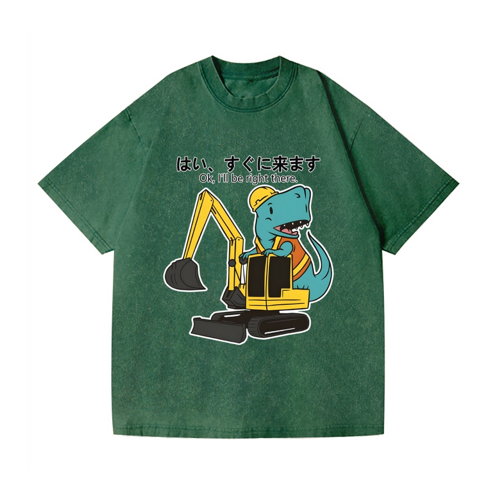 Dinosaur Excavator Vintage Wash Japanese Design T-Shirt