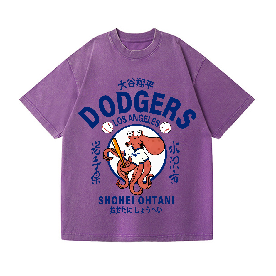 Dodgers Octopus Baseball 17 Vintage Wash Japanese Design T-Shirt