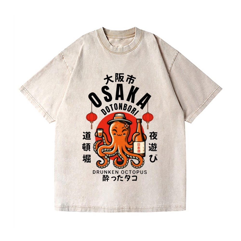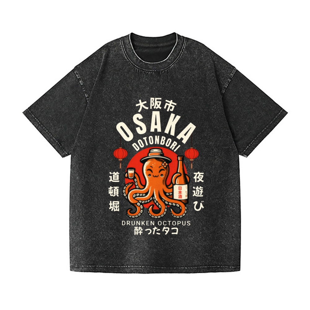 Dotonbori Osaka Japan Drunken Octopus Vintage Wash Japanese Design T-Shirt
