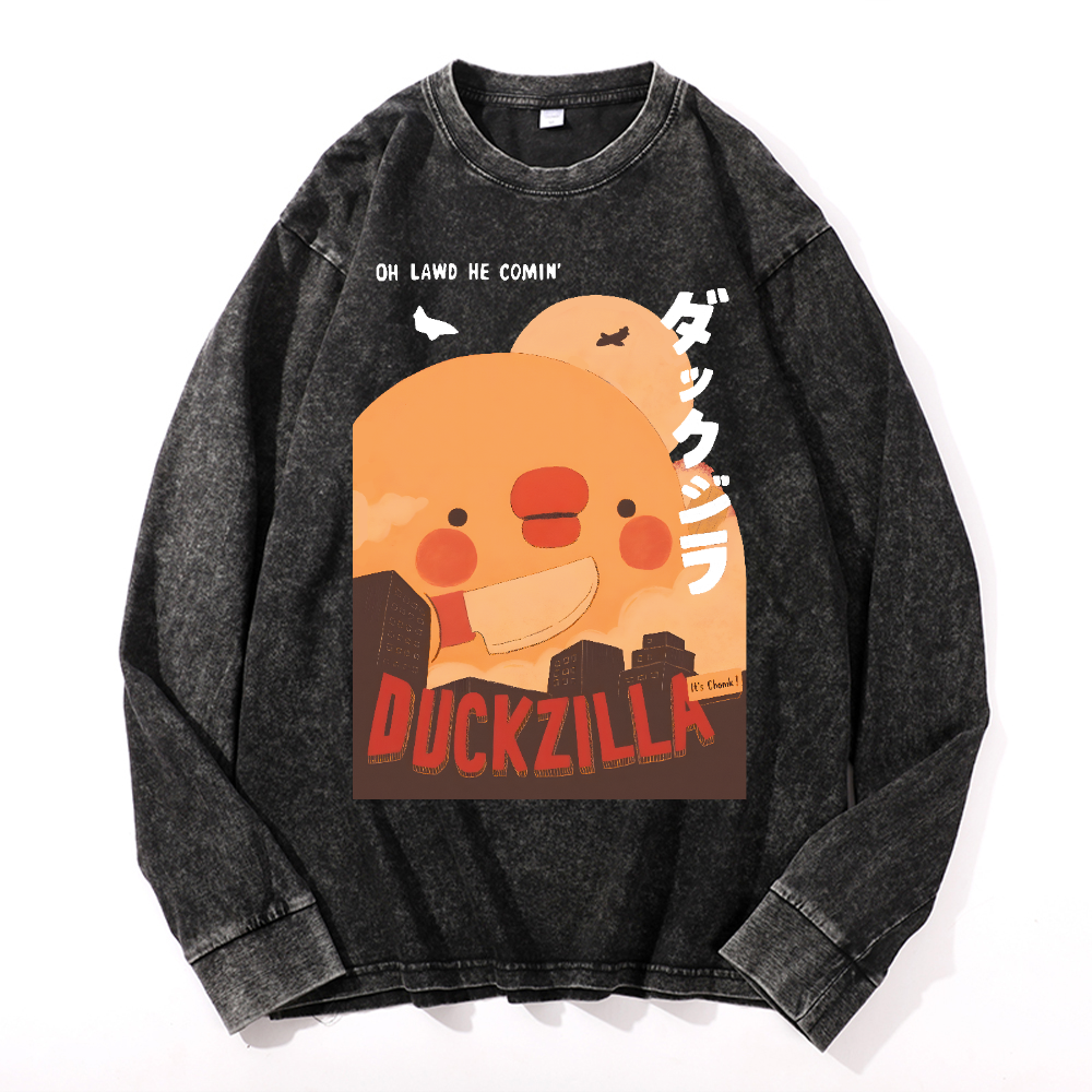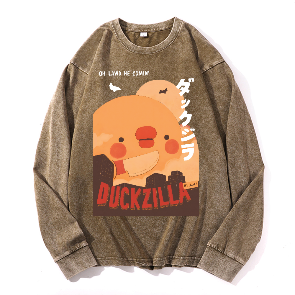 Duck Kaiju Vintage Cotton Wash Crewneck Long-Sleeve T-Shirt