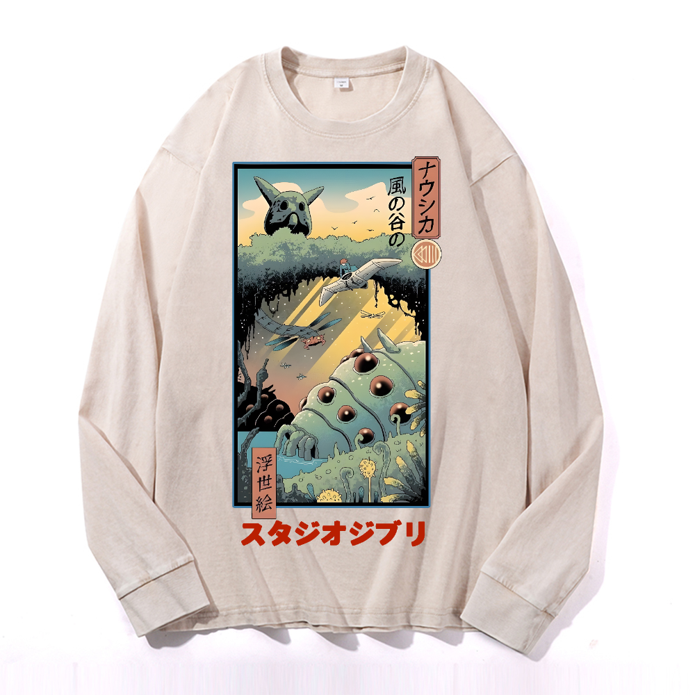 Ghibl iNausicaä of the Valley of the Wind Anime Vintage Cotton Wash Crewneck Long-Sleeve T-Shirt