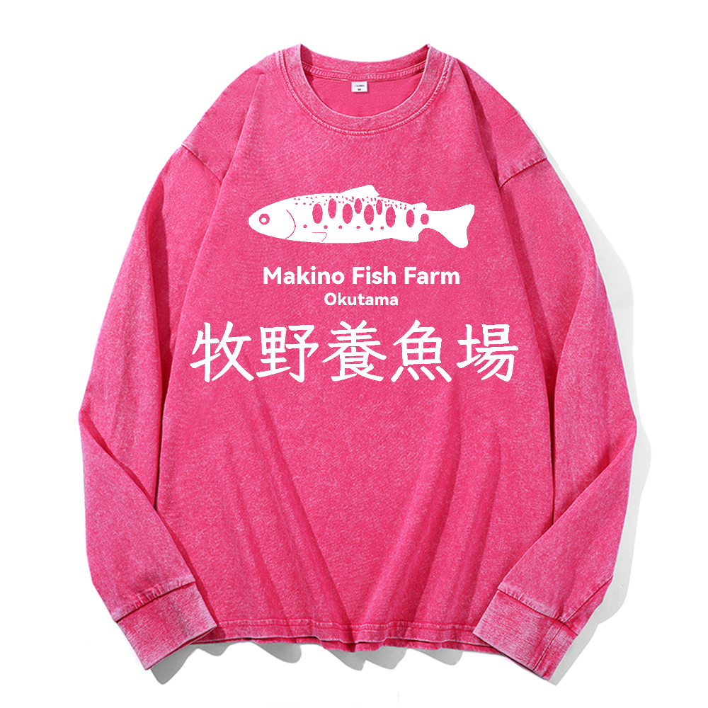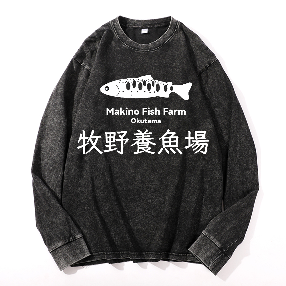 Makino Fish Farm Okutama Vintage Cotton Wash Crewneck Long-Sleeve T-Shirt