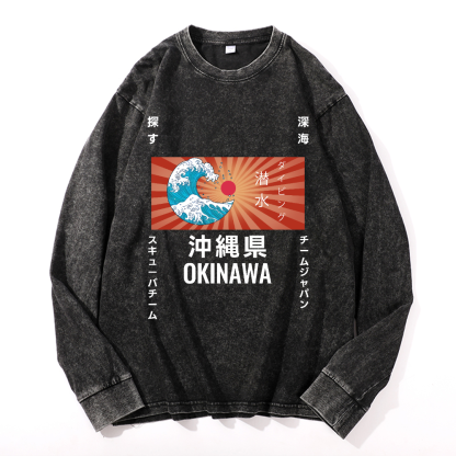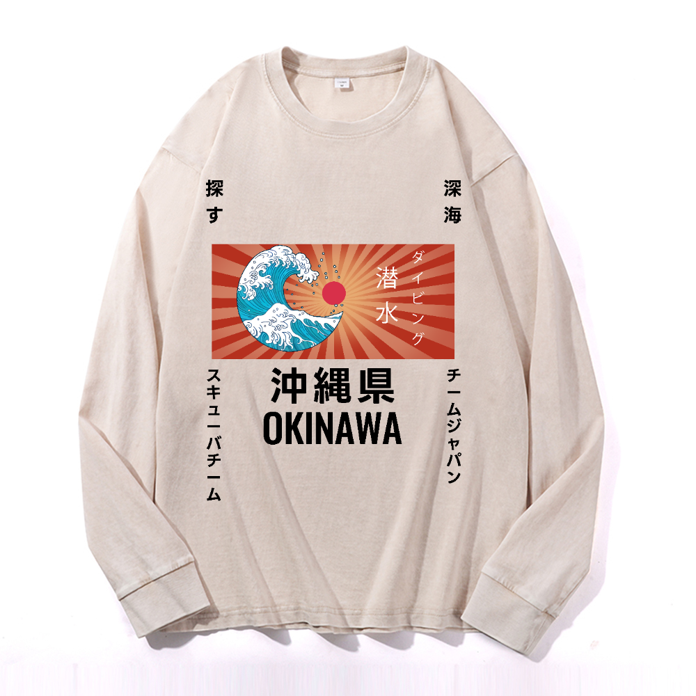 Okinawa Wave Vintage Cotton Wash Crewneck Long-Sleeve T-Shirt