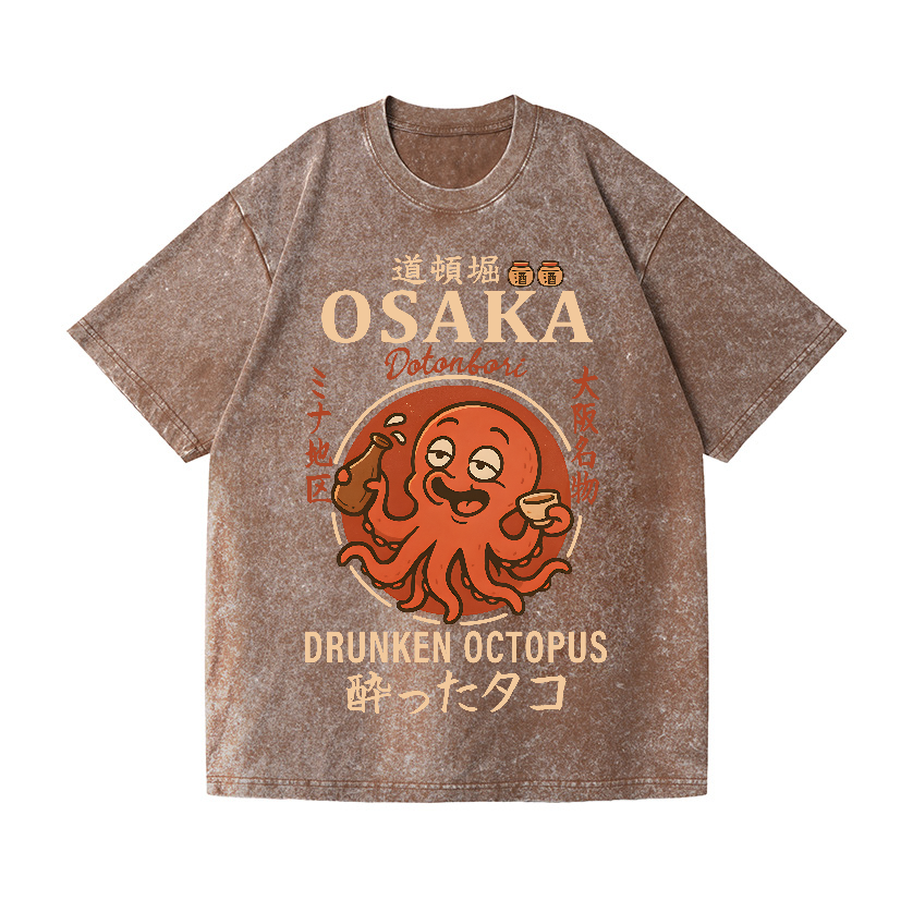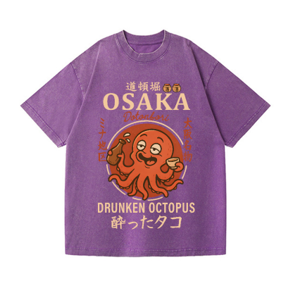 Osaka Dotonbori Drunken Octopus Vintage Wash Japanese Design T-Shirt