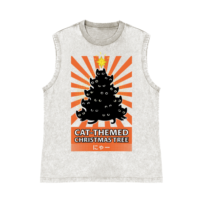 Cat-Themed Christmas Tree Pure Cotton Wash-Dyed Sleeveless Tank Top