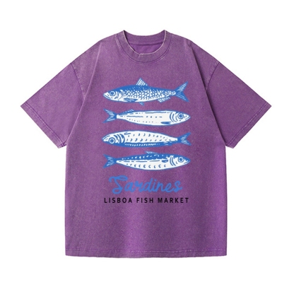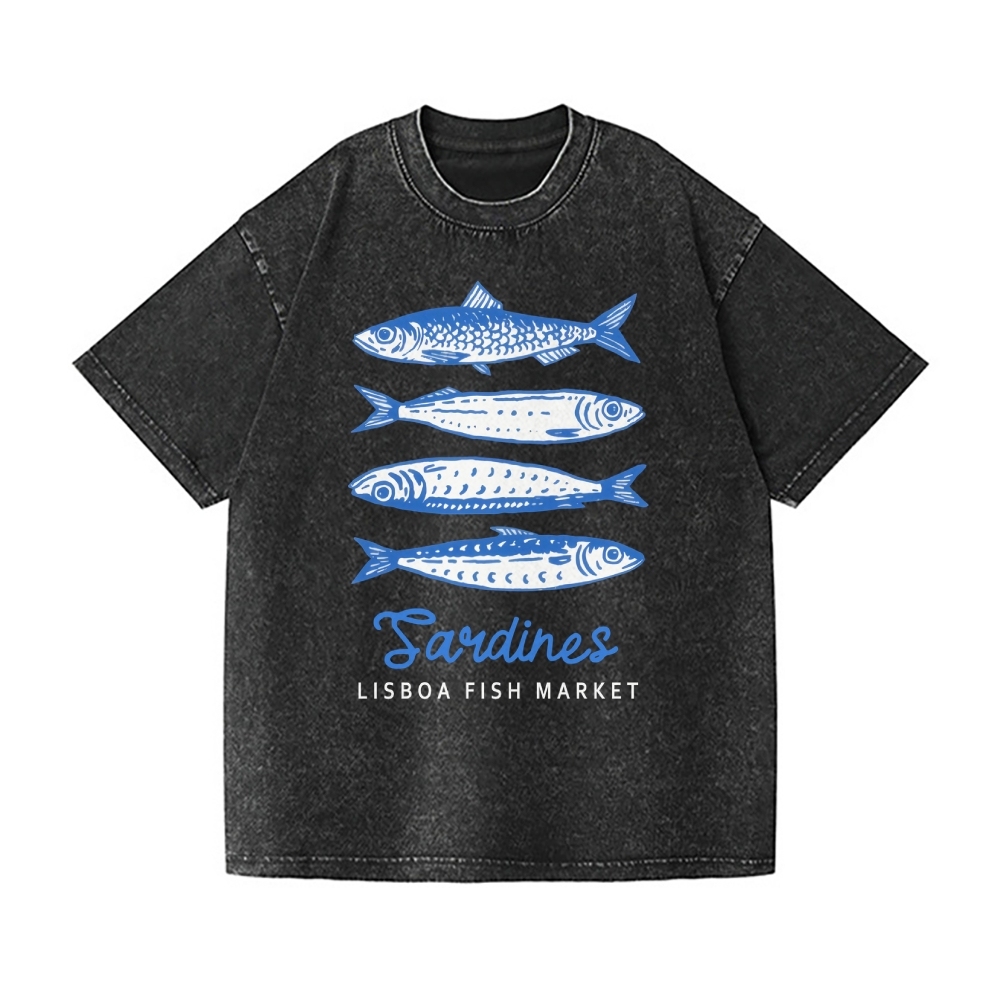 Sardines Lisboa Fish Market Vintage Wash Japanese Design T-Shirt