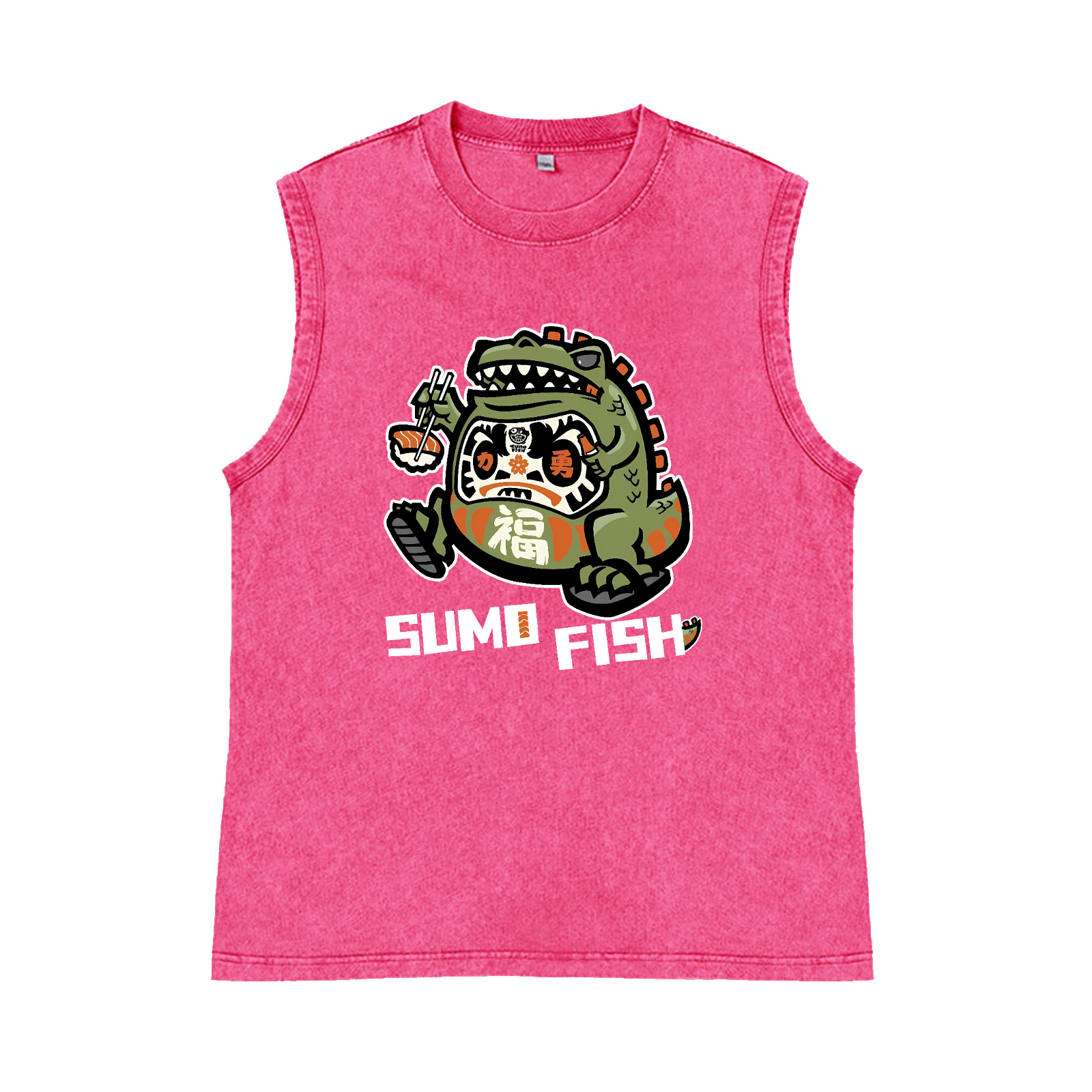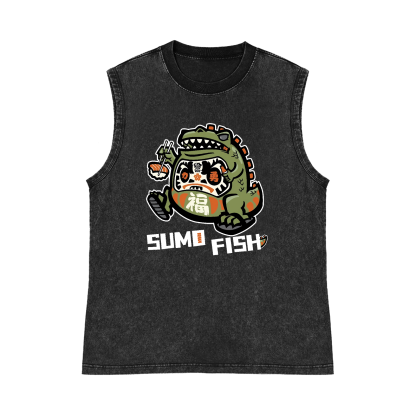 Sumo Fish Pure Cotton Wash-Dyed Sleeveless Tank Top