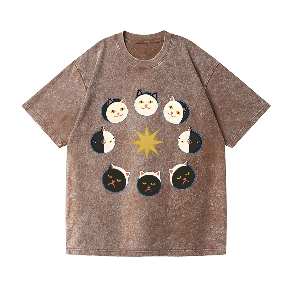 Tiger Eclipse Cat Vintage Wash Japanese Design T-Shirt