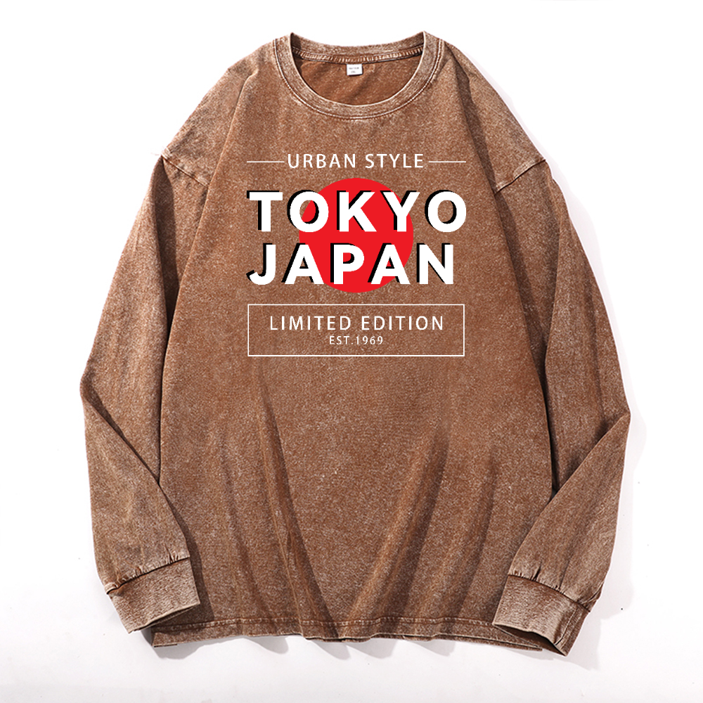 Tokyo Japan Vintage Cotton Wash Crewneck Long-Sleeve T-Shirt