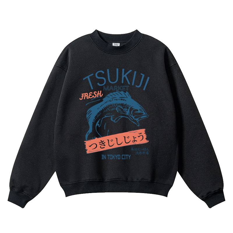 Tsukiji Fish Market Vintage Cotton Blend Crewneck Sweatshirt