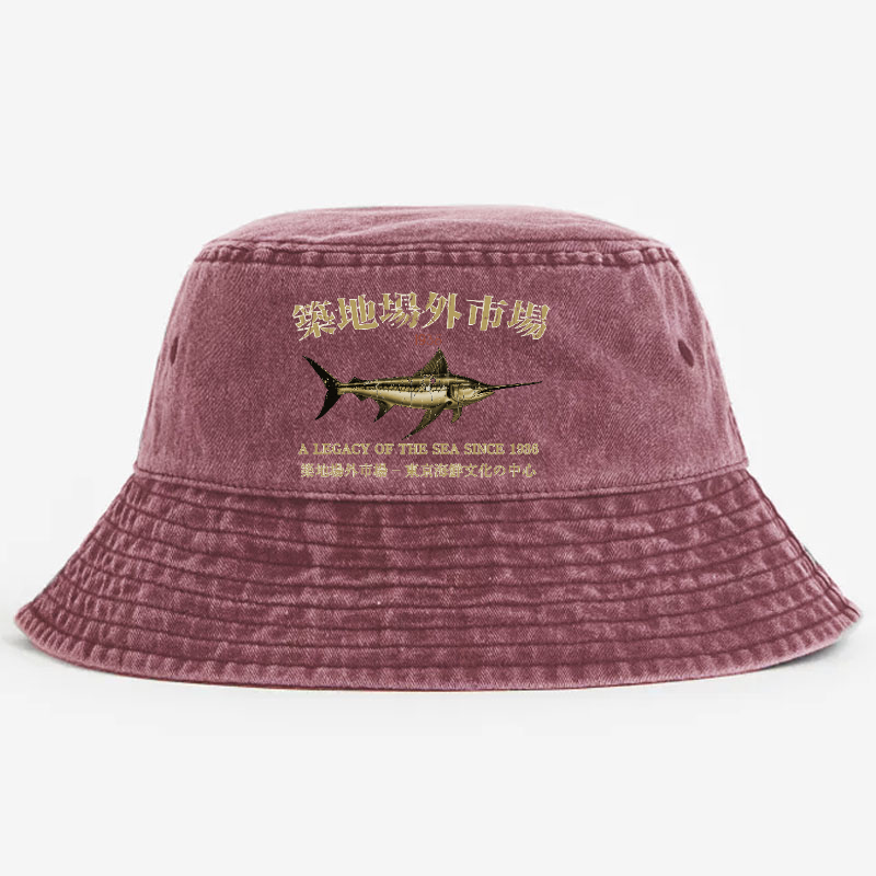 Tsukiji Market Fish Vintage 100% Cotton Bucket Hat