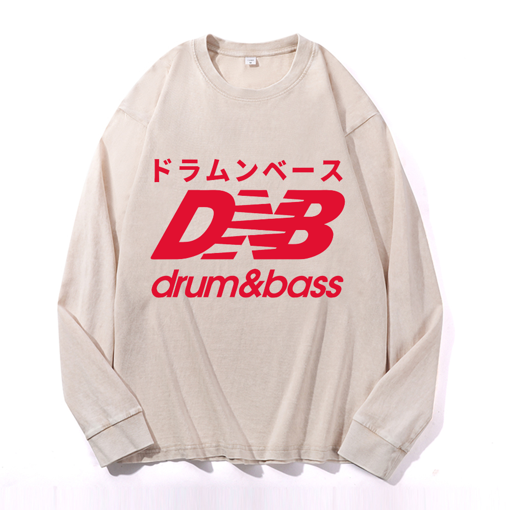 Drum and Bass Vintage Cotton Wash Crewneck Long-Sleeve T-Shirt