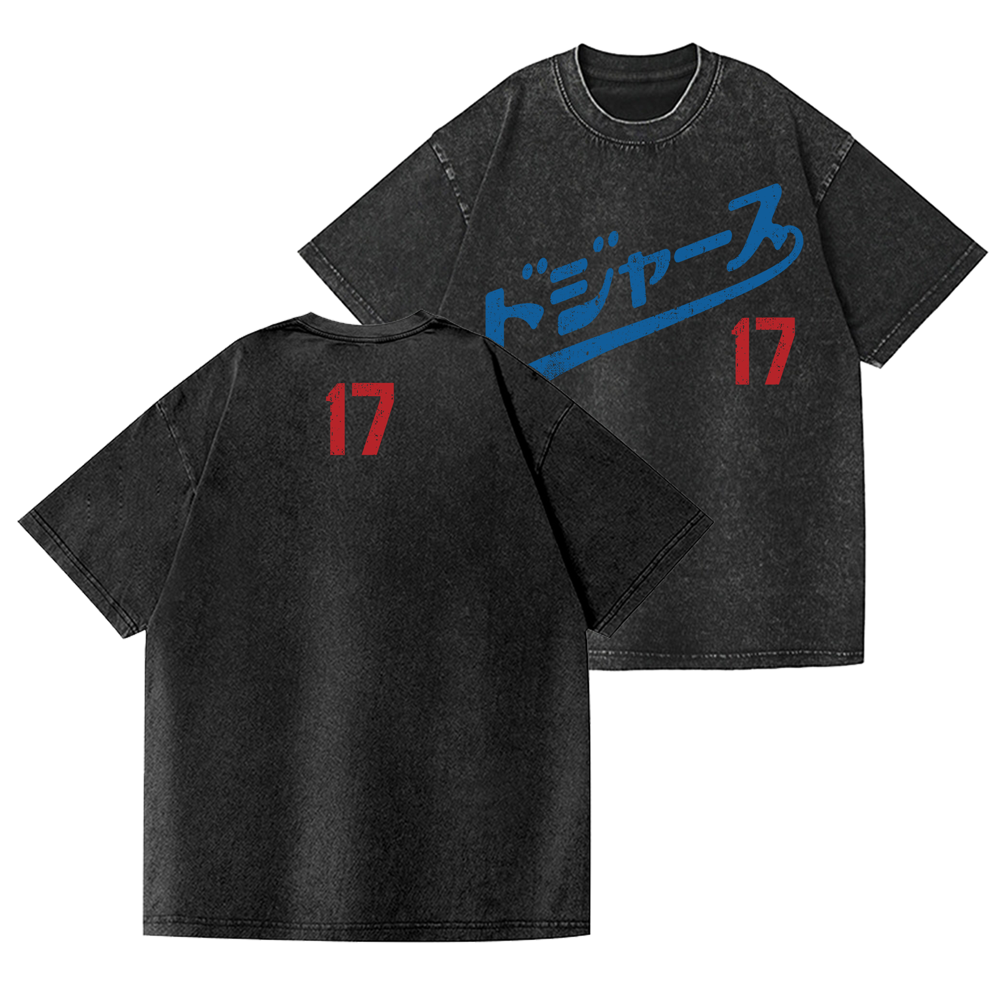 Dodger Baseball Vintage Wash Japanese Design Back Art T-Shirt