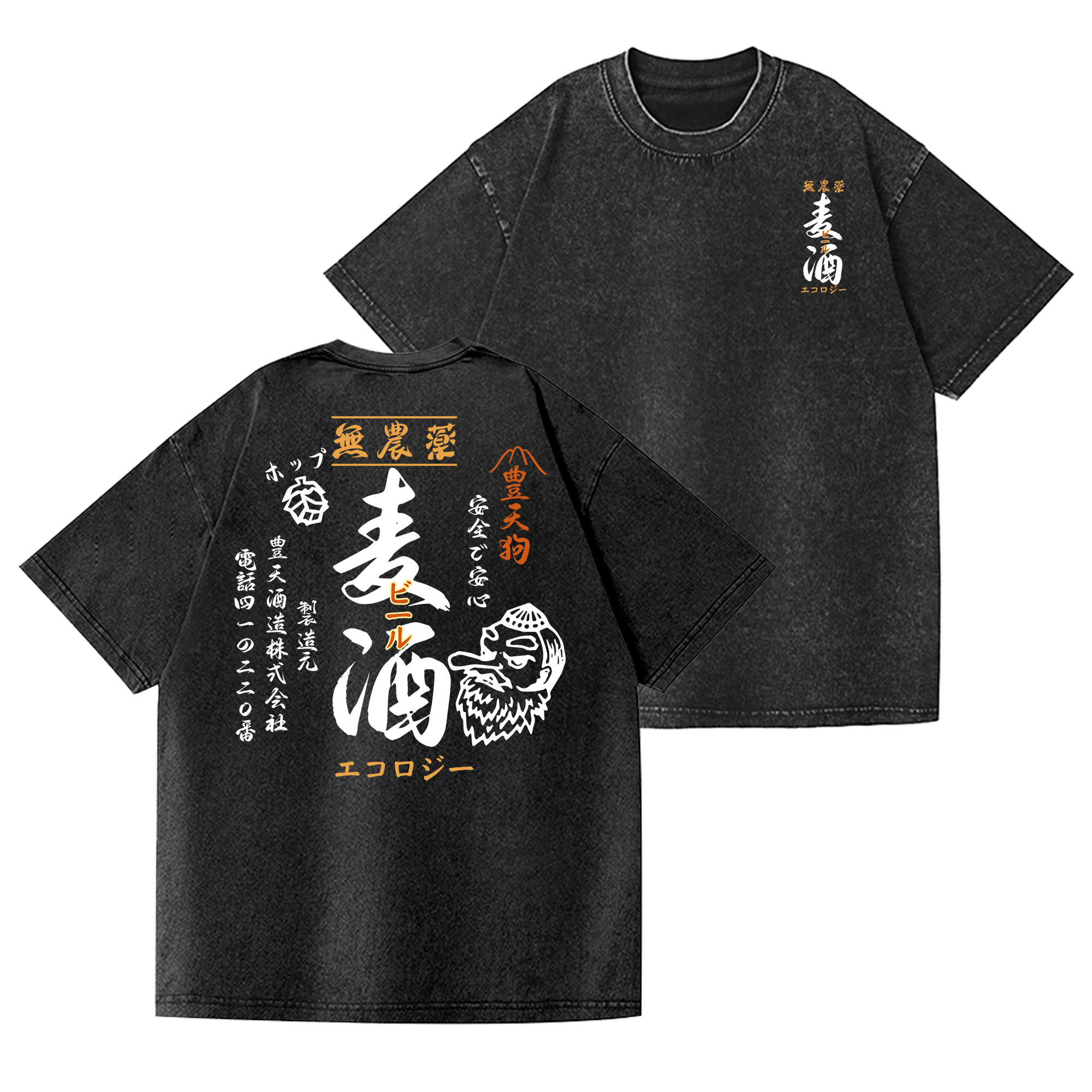 Tengu Beer Vintage Wash Japanese Design Back Art T-Shirt