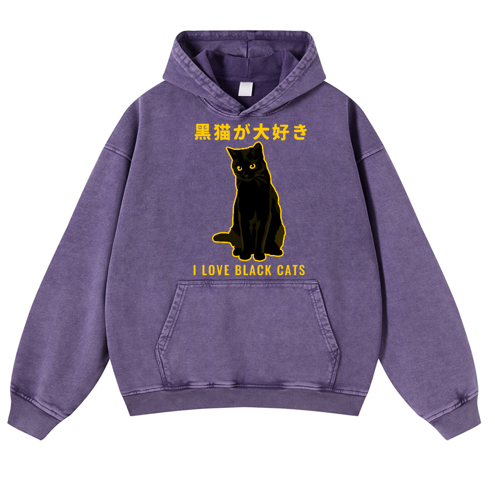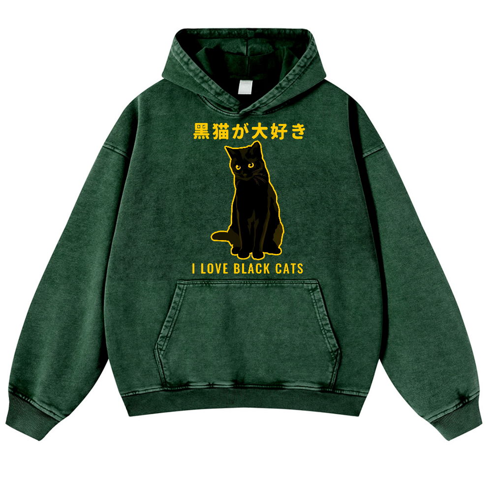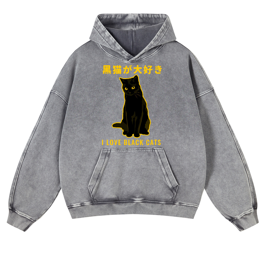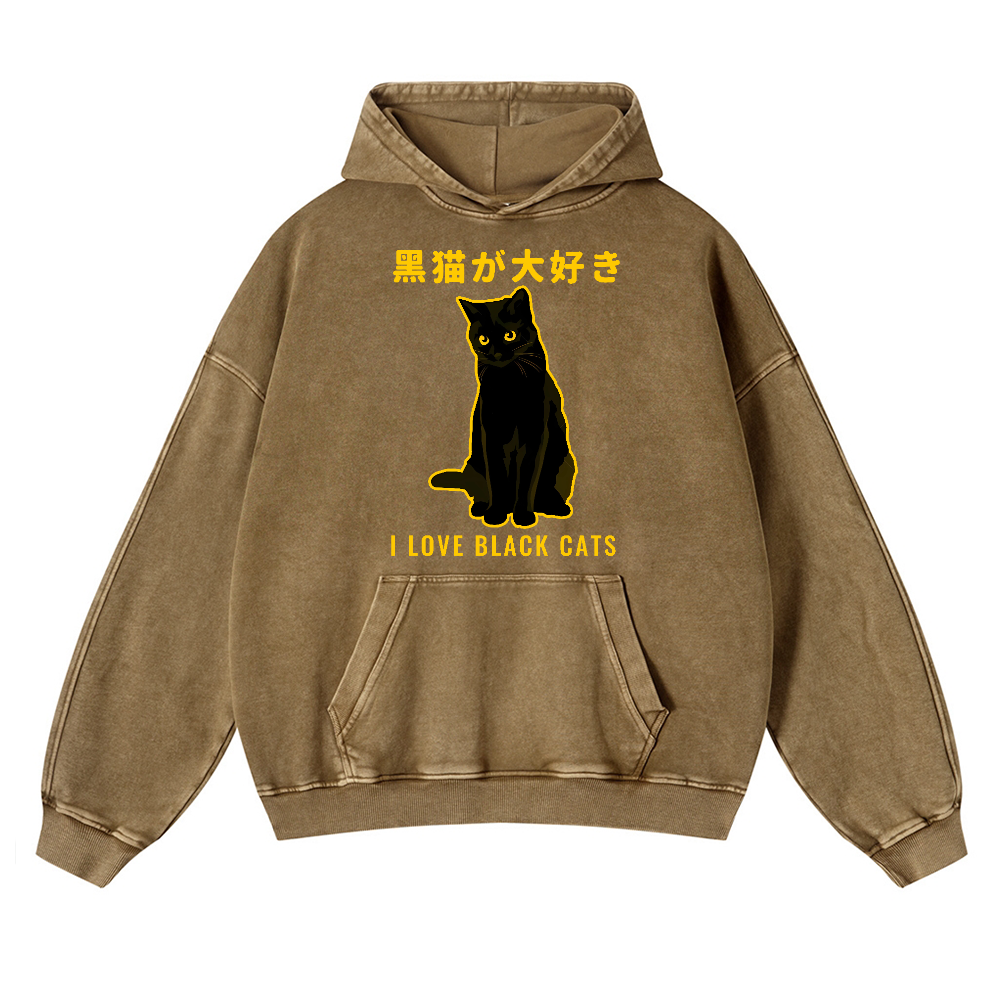 Black Cat Vintage Washed Thick Cotton Hoodie