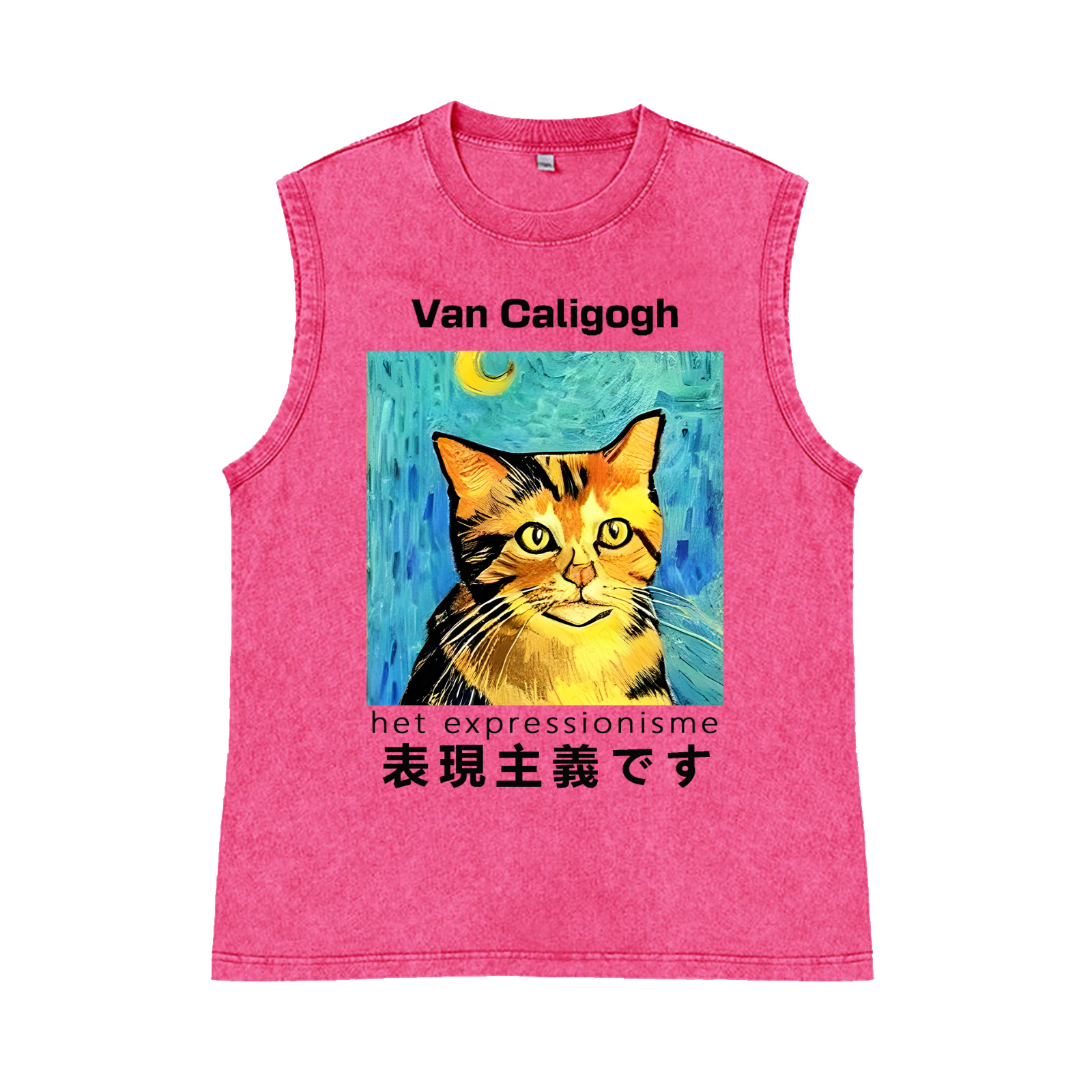 Cat Van Caligogh Pure Cotton Wash-Dyed Sleeveless Tank Top